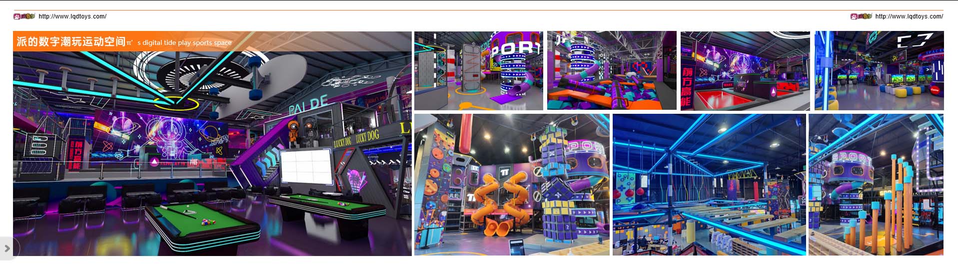 項目玩法:極限運動區(qū)、攀巖墻、蹦床區(qū)域、虛擬現(xiàn)實(VR)體驗、極限滑板或滑輪場、團隊運動區(qū)域、水上運動區(qū)、健身課程及團體操等。